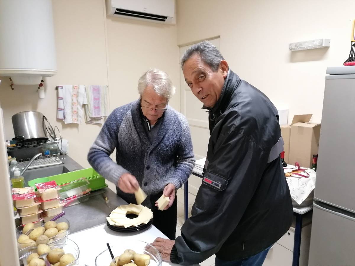 La préparation de la raclette par Martial et Roland